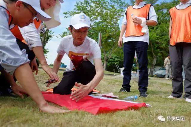 當日一早,參加活動的全體人員在集團總部樓下集合,乘坐2輛大巴前往珍珠島活動基地,抵達后,拓展活動隨即開始,專業(yè)教官迅速將大家隨機分成6支隊伍,參加活動的集團7位領導也分別列入各隊。在教官的引導下,第一個項目“開營破冰”活動開始。各隊選出隊長和隊秘,在他們的帶領下,隊員們開動腦筋、集眾智慧,將特發(fā)企業(yè)文化理念內涵融合其中,設計出極具創(chuàng)意的隊名、口號、隊歌、隊旗和團隊形象展示姿勢。戰(zhàn)狼隊、先行隊、火箭隊、美好隊、拓荒牛隊、公牛隊——在6支富有活力和競爭力的隊伍建隊過程中,從擔任隊長、隊秘的自告奮勇,到繪制隊旗、擺演隊型的群策群力,再到展示隊伍雄姿及高唱隊歌的不甘人后,各隊全力以赴,爭當最優(yōu),隊伍口號嘹亮,動作整齊,各環(huán)節(jié)無一不彰顯出大家對集體榮譽的孜孜以求,精彩展示了特發(fā)人豪邁進取的精神面貌和自信昂揚的職業(yè)風采。期間,小小的懲罰也平添了幾分樂趣,隊員們彼此的羞澀和拘束在現(xiàn)場連成一片的歡聲笑語中慢慢消解,在對特發(fā)文化理念的深入理解和智慧詮釋的過程中,團隊間的協(xié)作也增添了一份信任和默契,大家的競技熱情被充分點燃。