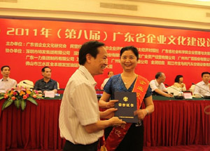 在由廣東省委宣傳部指導,廣東省企業(yè)文化研究會、民營經濟時報社、亞太經濟時報社、廣東省社會科學院企業(yè)管理與決策科學研究所主辦,廣州市企業(yè)評價協(xié)會承辦的2011年(第八屆)廣東省企業(yè)文化建設論壇活動中,經論壇組委會專家團研究評議,我集團位列“2010年度廣東省企業(yè)文化建設十佳單位”首位,劉愛群獲“2010年度廣東省企業(yè)文化建設十佳先進個人”、林嬋波獲“2010年度廣東省企業(yè)文化管理先進個人”稱號。