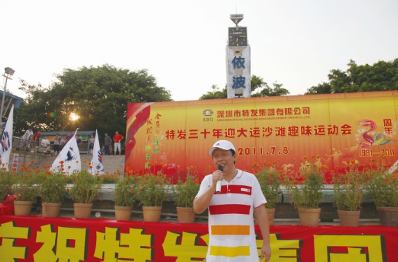 7月8日,特發(fā)小梅沙旅游中心裝扮一新,司旗彩旗迎風飄揚,五彩鮮花競相綻放,“熱烈慶祝特發(fā)集團成立30周年”等祝福語在小梅沙酒店門口的LED大屏幕上不停滾動,到處彌漫著祥和歡樂的氣氛。下午4:30,特發(fā)30年迎大運沙灘趣味運動會在美麗的小梅沙海灘拉開帷幕。集團總部全體員工、全資控股企業(yè)班子成員及財務負責人、參股企業(yè)特發(fā)方產權代表參加運動會。運動會安排了沙灘排球、步調一致和障礙接力3個項目;根據(jù)人數(shù)對等的原則,運動員分成4支參賽隊伍,即:由集團公司領導和部門領導組成的公司一隊;由集團公司各部門員工組成的公司二隊;由特發(fā)信息、小梅沙旅游中心、特發(fā)物業(yè)3家企業(yè)組成的企業(yè)一隊;由特力集團、香蜜湖度假村、黎明集團、高爾夫、華麗公司、華明公司組成的企業(yè)二隊。