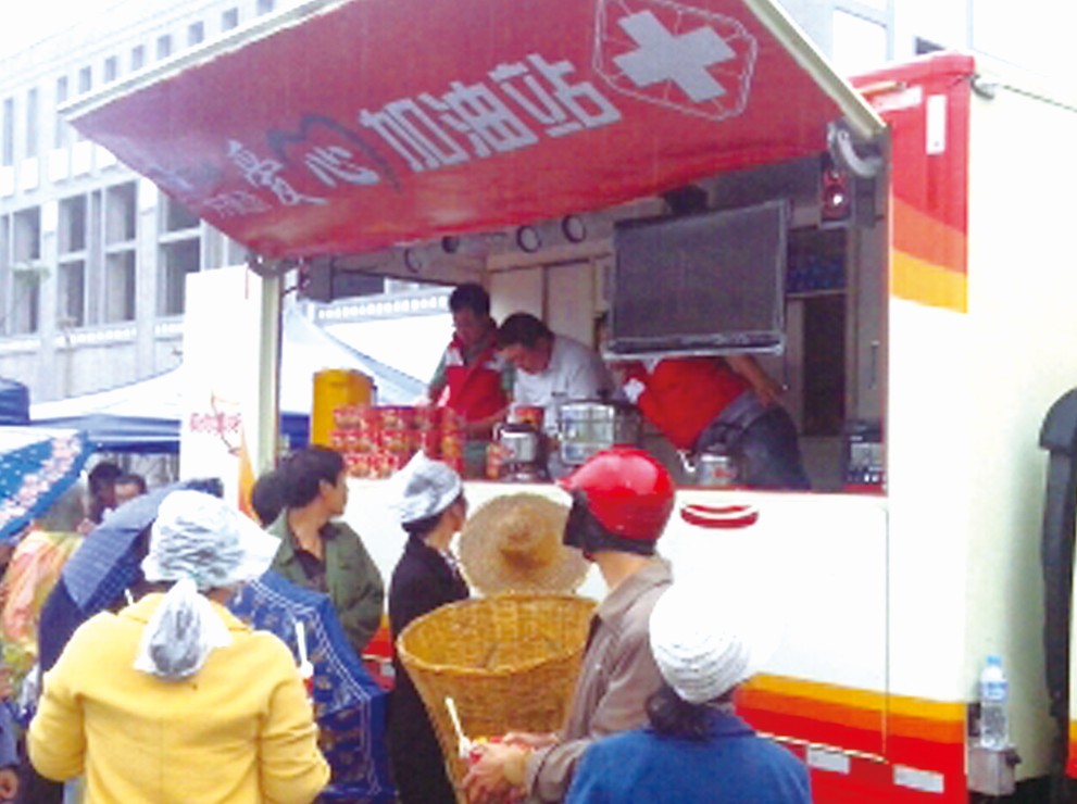 沒有休息,沒有喊苦喊累,救援小隊在經(jīng)過長達9個小時的急行軍后,立刻投入到任務之中。物資裝卸中不乏重量級設備,令人精疲力盡;道路的疏通指揮也因大批沒有救災經(jīng)驗志愿者的涌入而令人聲嘶力竭;為當?shù)財?shù)百高中生搭設帳篷也不是一件輕松容易的活兒;連平時在家不怎么做飯的佘仕強等人在震后蘆山縣卻成了掌勺師傅。在災難中,人與人特別需要互相支持,救援小隊爆發(fā)出最大的潛力,竭盡所能地幫助災區(qū)同胞。