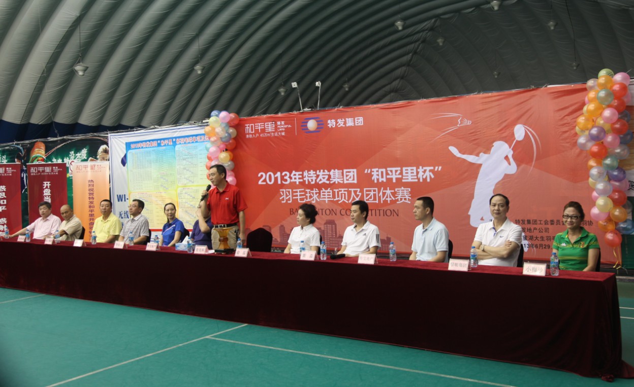 乘特發(fā)“和平里”項(xiàng)目成功推售之機(jī),為進(jìn)一步宣傳和推介“和平里”,豐富員工業(yè)余體育文化生活,集團(tuán)工委會(huì)、特發(fā)羽協(xié)主辦、地產(chǎn)公司承辦的2013年特發(fā)“和平里”杯羽毛球單項(xiàng)及團(tuán)體賽于6月29至30日在大生體育場舉行。集團(tuán)總部和全資控股企業(yè)組成7支代表隊(duì)共53對選手、106名運(yùn)動(dòng)員參加比賽。