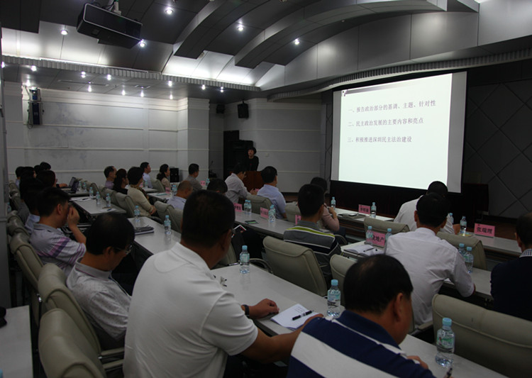 市委黨校孟偉教授受邀擔(dān)任主講。她從當(dāng)前政治環(huán)境基調(diào)、民主政治發(fā)展的主要內(nèi)容和亮點以及積極推進深圳民主法治建設(shè)三個方面對主題進行了全面分析和詳細解讀,使與會人員更好、更全面地理解和把握了社會主義民主政治和依法治國的核心內(nèi)涵,對我們接下來學(xué)習(xí)領(lǐng)會十八屆四中全會精神和進一步推進集團全面實現(xiàn)依法治企、依規(guī)辦事、廉潔從業(yè)具有較強的指導(dǎo)性意義。