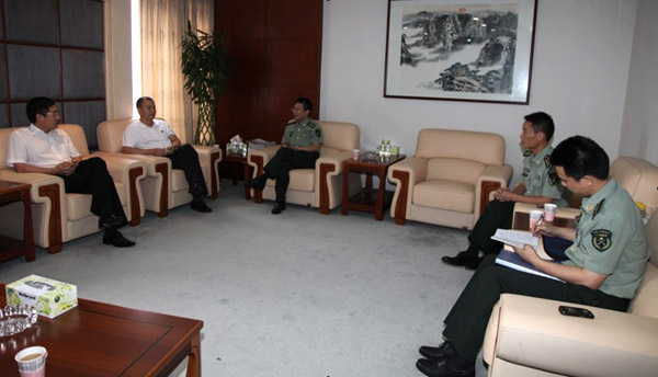2011年5月24日上午,深圳市羅湖區(qū)人民武裝部政委劉曉春上校、副部長(zhǎng)劉志鵬中校等一行四人蒞臨我司,調(diào)研集團(tuán)民兵團(tuán)建設(shè)和指導(dǎo)集團(tuán)武裝部工作。集團(tuán)總經(jīng)理施長(zhǎng)躍、辦公室主任丁輝、副主任陳忠煉、副主任劉軍熱情接待了劉政委一行。施長(zhǎng)躍總經(jīng)理首先介紹了集團(tuán)的基本情況,陳忠煉副主任匯報(bào)了集團(tuán)民兵團(tuán)建設(shè)和集團(tuán)武裝部工作情況,劉政委認(rèn)真聽(tīng)取了介紹和匯報(bào),對(duì)特發(fā)集團(tuán)人武建設(shè)工作給予了充分肯定和贊賞。