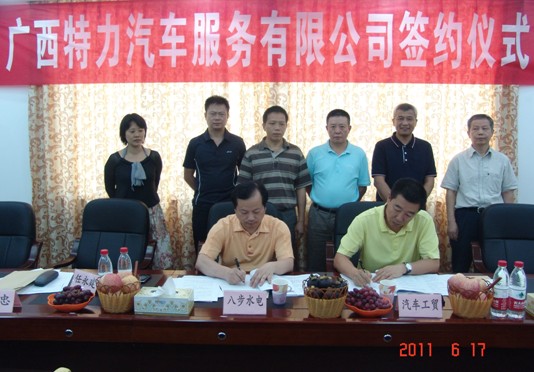 發(fā)布日期:2011/8/20 12:00:21 | 瀏覽次數(shù):5589 來源:特力集團汽車事業(yè)部 張靈2011年6月17日,特力集團下屬全資子公司深圳市汽車工業(yè)貿(mào)易總公司與廣西桂東電力下屬全資子公司賀州市八步水利電業(yè)有限責任公司共同出資成立的廣西特力汽車服務有限公司正式在賀州市掛牌成立。特力集團張瑞理董事長與桂東電力授權(quán)代表黎智強總經(jīng)理簽署了《廣西特力汽車服務有限公司合作協(xié)議》并揭牌。