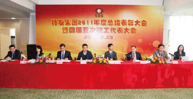 會(huì)議通過(guò)了集團(tuán)施長(zhǎng)躍總經(jīng)理代表經(jīng)營(yíng)班子所作《特發(fā)集團(tuán)2011年度工作報(bào)告》,以及《2011年度集團(tuán)公司業(yè)務(wù)招待費(fèi)情況報(bào)告》、《2011年度集團(tuán)工委會(huì)經(jīng)費(fèi)收繳和使用情況報(bào)告》、《職代會(huì)提案處理情況說(shuō)明》等文件,對(duì)先進(jìn)集體和個(gè)人進(jìn)行了表彰,最后集團(tuán)劉愛(ài)群董事長(zhǎng)講話!稌(huì)議決議》指出:2012年是特發(fā)的“行動(dòng)年”,這是向全體特發(fā)員工發(fā)出的戰(zhàn)略號(hào)召。我們每一個(gè)特發(fā)人都要以“十二五”規(guī)劃為指引,積極行動(dòng)起來(lái),認(rèn)真學(xué)習(xí)、深刻領(lǐng)會(huì)、全面貫徹落實(shí)本次大會(huì)確定的各項(xiàng)任務(wù),在集團(tuán)董事會(huì)和經(jīng)營(yíng)班子的帶領(lǐng)下,團(tuán)結(jié)一致,拼博進(jìn)取,以優(yōu)異的成績(jī),為實(shí)現(xiàn)集團(tuán)的跨越式發(fā)展做出更大的貢獻(xiàn)!