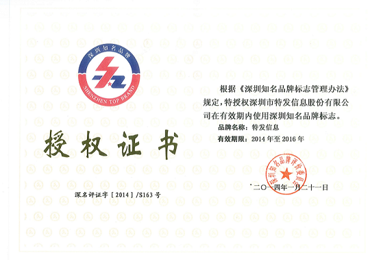 特發(fā)信息再度獲選“深圳知名品牌”